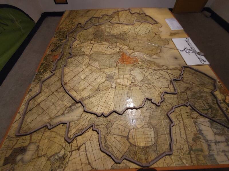 Hierbij zijn er twee foto's van een plattegrond van de Stelling van Amsterdam, in totaal 45 vestingen. Vanaf Muiden tot aan Edam.