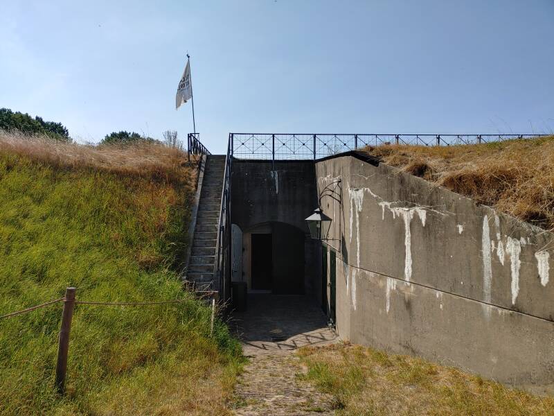 De twee foto's laten een deel van het dak en de ingang van het Fort zien.