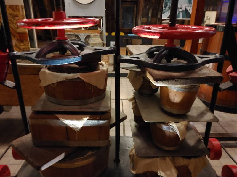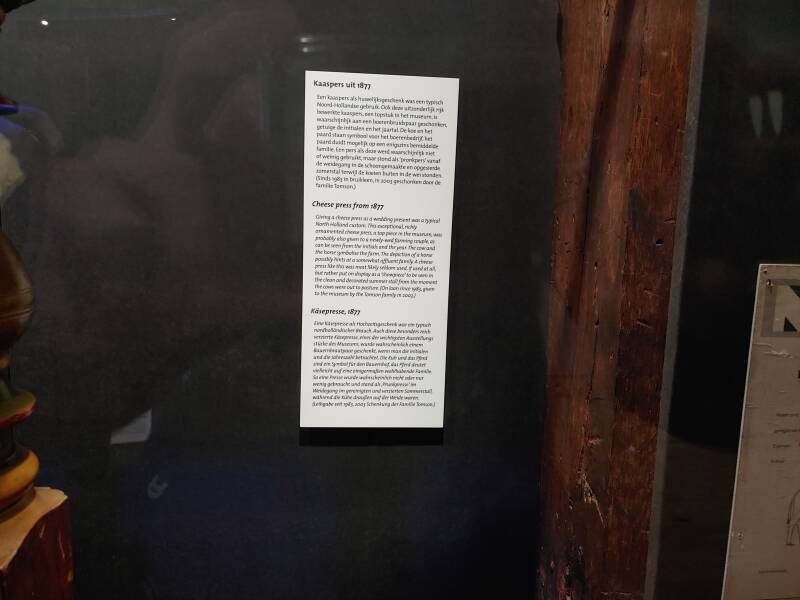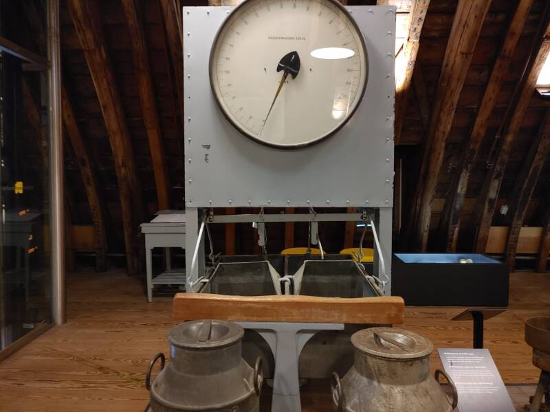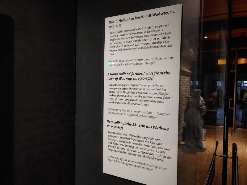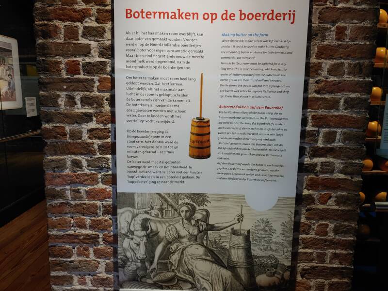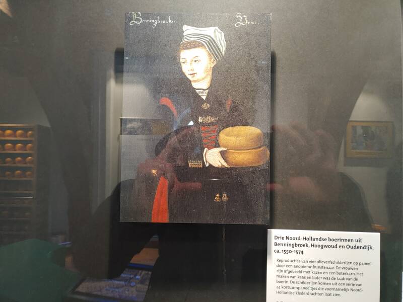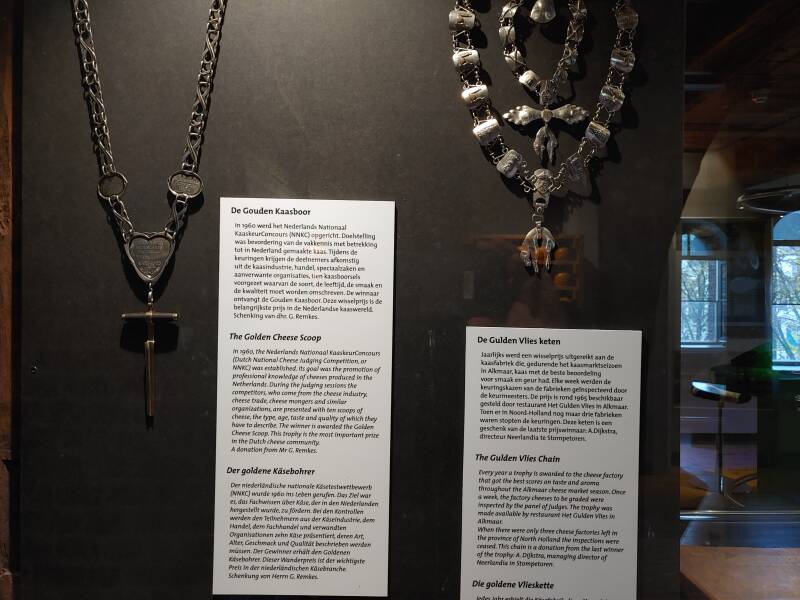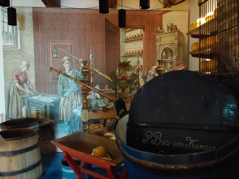 In het Kaasmuseum tref je veel spullen met betrekking tot zuivel: borden, flessen, verschillende kaassoorten, portretten van Noord-Hollandse boerinnen uit 1550 - 1574, tekeningen van de kaasmarkt en het oer-Hollandse leven op het platteland, ook een uitleg van de geschiedenis van de kaasmarkt, de weegschaal met melkbussen - voor de melkaanvoer in Noord-Holland werden er gestandaardiseerde melkbussen van 40 liter gebruikt. Begin jaren '80 werden de laatste melkbussen geleegd geleegd bij zuivelfabriek Neerlandia in Stompetoren. De Gulden Vlies keten werd jaarlijks uitgereikt aan de kaasfabriek die, gedurende het kaasmarktseizoen in Alkmaar, kaas met de beste beoordeling voor smaak en geur had.