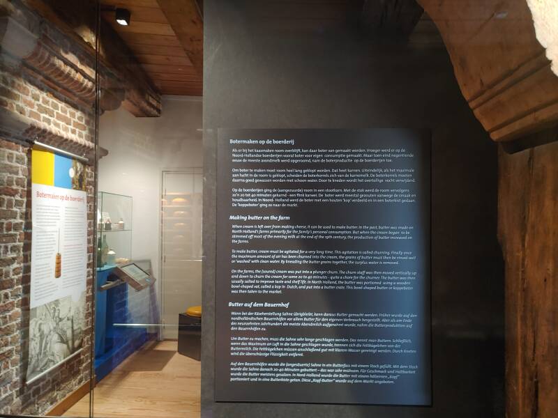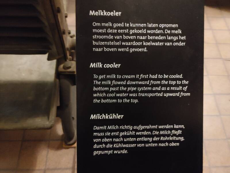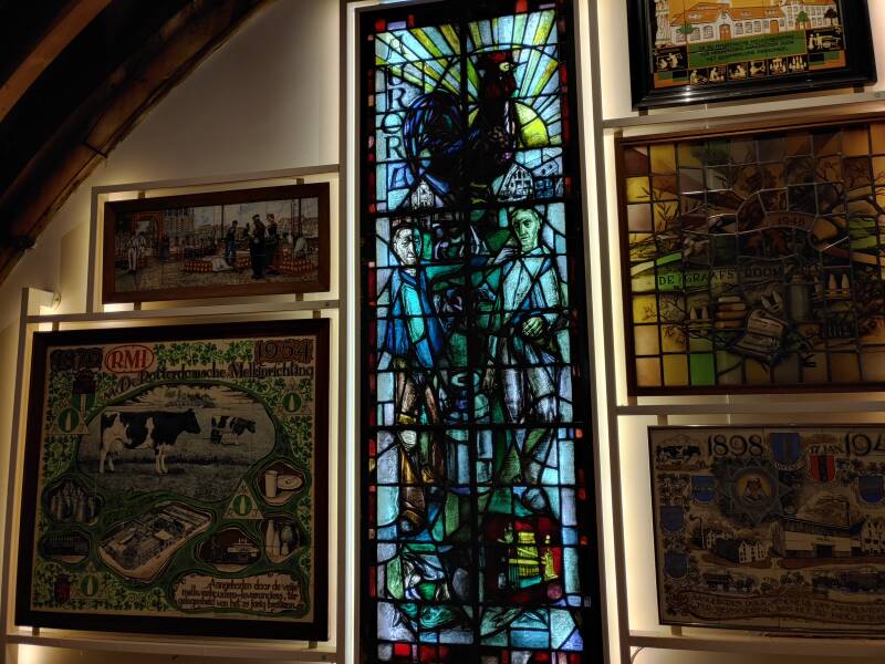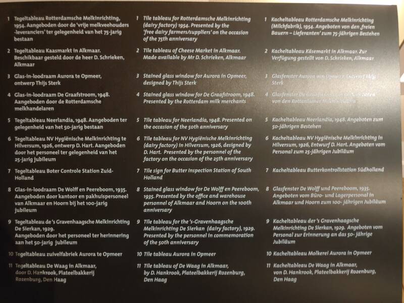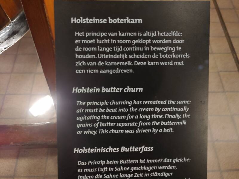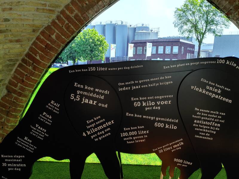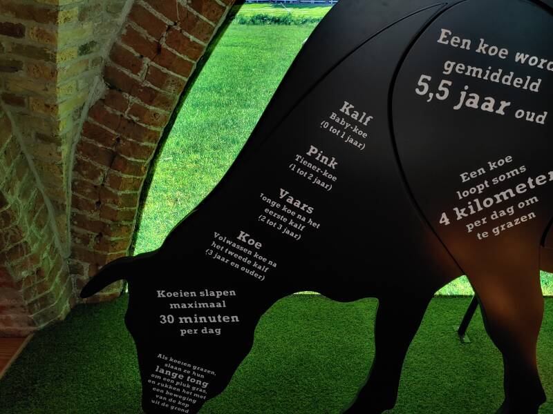 Op foto's zijn de verzamelde spullen te zien, bereiding voor melk, kaas, yoghurt en boter. Op de muur bij het raam zijn tegeltableaus te zien van verschillende bedrijven en gebouwen. Bij de koe staan veel weetjes, zoals dat een koe 150 liter per dag kan drinken, maar ook dat een koe 100.000 liter melk kan geven, en dat een koe gemiddeld 30 liter melk per dag geeft. Allemaal handige weetjes!