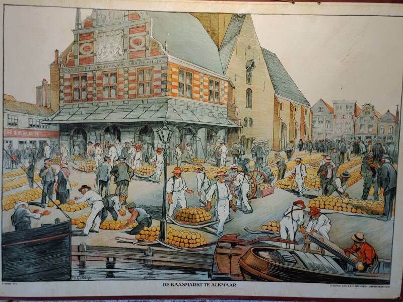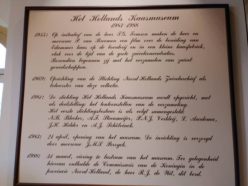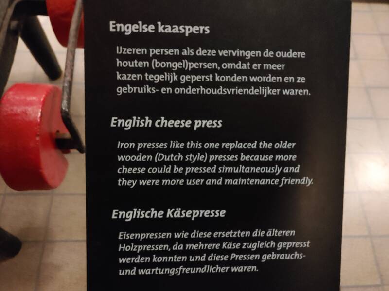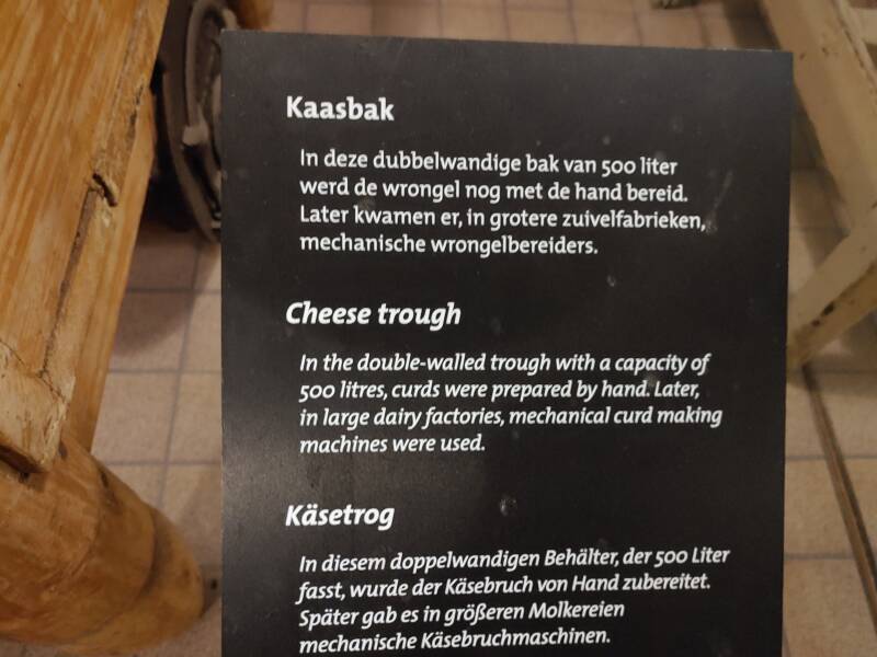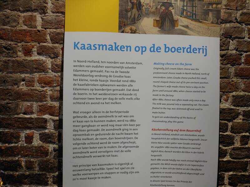 Bij de Waag bevond zich een museum die ik vorig jaar niet gezien had: Het Kaasmuseum. Het Kaasmuseum is op 21 april 1983 geopend en heeft te maken, zoals het zegt, met kaas. In het museum kan de bezoekers een kijkje nemen hoe de bereiding van zuivelproducten op de boerderij en in de fabriek wordt gemaakt, maar ook de handel en het leven op het platteland wordt getoond. Het maken van melk, kaas, yoghurt heeft een grote ontwikkeling: eens in de drie dagen komt de tankwagen van de zuivelfabriek op de boerderij om de melktank te legen. De chauffeur controleert de geur, kleur en temperatuur van de melk. Ook neemt hij een proefmonster van de melk in de melkkoeltank. Daarna brengt hij het naar de zuivelfabriek waar er zuivelproducten van worden gemaakt. De tankwagen haalt per keer zo'n 10.000 liter melk op bij de boer. In een volle tankwagen past wel 40.000 liter! In de fabriek wordt melk verwerkt door de echte melkmakers, koeien. In de zuivelfabriek wordt deze melk verwerkt, zodat het terecht komt in de winkel. In de fabriek wordt de melk eerst gecontroleerd en verhit. In grote ronddraaiende trommels wordt het vet uit de melk gehaald. Dan wordt de melk verwerkt tot verschillende soorten zuivel, kaas, melk, toetjes, verse melk, slagroom of melkpoeder. Ook kaas wordt in de fabriek gemaakt, dat wordt gedaan door stremsel en zuursel. Stremsel geeft een vaste structuur aan de kaas en zuursel zorgt ervoor dat kaas langer houdbaar blijft. Het komt erop neer dat er veel nodig is om zuivel te produceren!