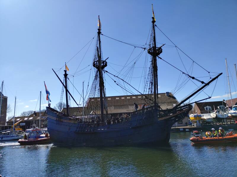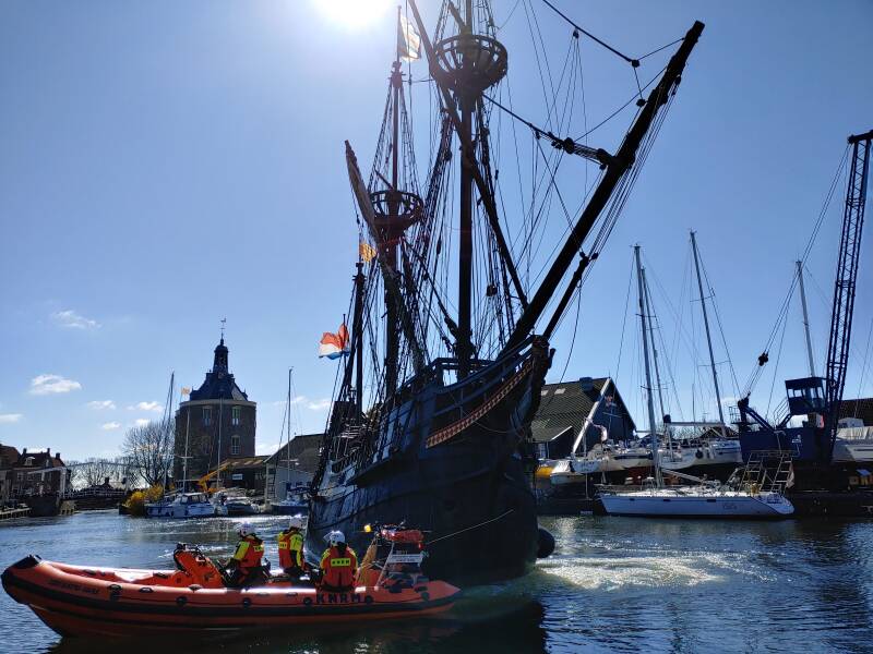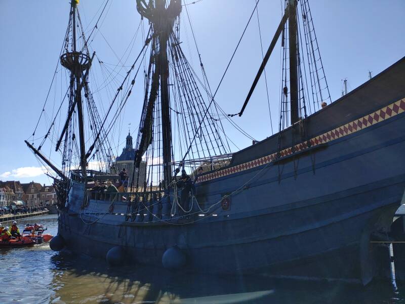Op 2 april kreeg Enkhuizen weer bezoek, dit keer was het een bijzonder schip: de Halve Maen. Het schip, gebouwd ergens in 1606, was van de VOC en diende als snel vrachtschip voor graan. Het schip had destijds Henry Hudson aan boord waarmee handel was in Amerika. Henry Hudson was een Engelse zeevaarder. Hudson maakte vier reizen op zoek naar de Noordoostelijke en Noordwestelijke Doorvaart, waarvan vooral de laatste twee bekend zijn geworden. Het schip heeft de afgelopen jaren in de haven van Volendam en Hoorn gelegen. In 2016 en 2018 was het schip ook al op bezoek in Enkhuizen. Het schip ziet er prachtig uit!