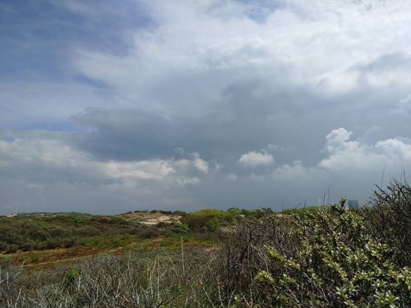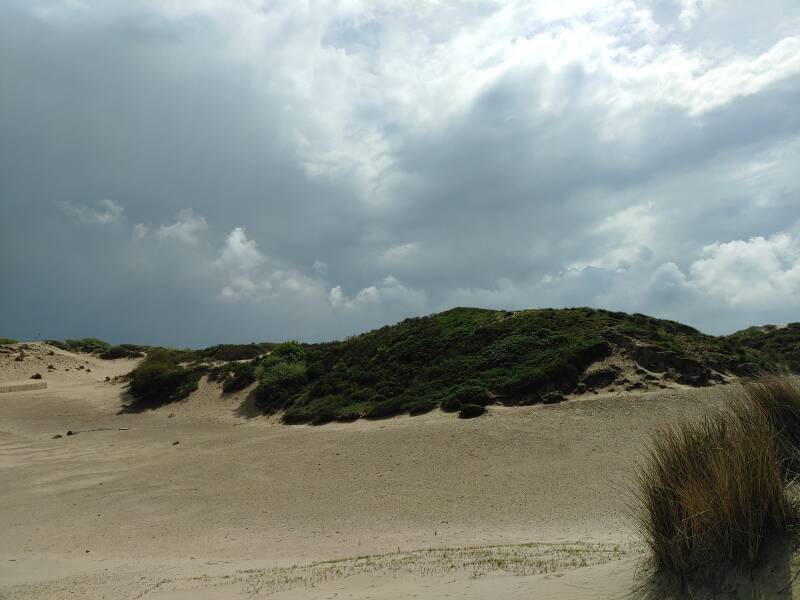 We kwamen geiten tegen en ik stopte om een kijkje te nemen bij een uitzichtpunt genaamd 'De Vulkaan', een 33 meter hoge duin. Een prachtig uitzicht over het strand en Kijkduin. Ook was er bij het uitzichtpunt een verborgen gangenstelsel, een deel van het complex 'Wiederstands Nest 67', van 130 meter lang met twee manschappenbunkers, een geschutsbunker, een waterbergplaats en een waarnemingspost, dat werd gebruikt voor de oorlog. Het museum, met de bunker, wordt gerund door vrijwilligers. Verderop was er een Jutterskeet, een museum, met voorwerpen wat op het strand werd gevonden. De Strandjutter Jan 'Ome Jan' van der Veer heeft zijn Jutterskeet zelfgemaakt met voorwerpen. Het is mogelijk om op zoek te gaan naar schatten met een metaaldetector.