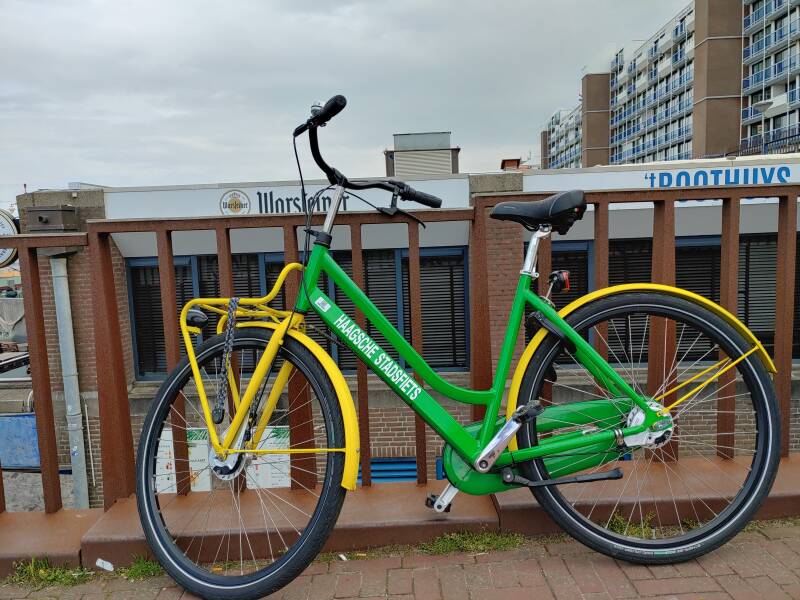 We fietsten door de duinen naar Scheveningen, een route van 10 kilometer. Het was een mooie route langs een natuurgebied, zandbergen en de zee. Na een half uur arriveerden we dichtbij Scheveningen. We zagen een standbeeld van een vrouw, dat bleek een Scheveningse vissersvrouw in klederdracht te zijn. Het standbeeld is vervaardigd door de beeldhouwer en edelsmid Gerard Bakker en het standbeeld werd onthuld door de toenmalige koningin Beatrix. Op de voorkant van het standbeeld stond een tekst: ''Voor allen die uitvoeren en niet terugkeerden''. Op de achterkant van het standbeeld stond een gedicht: ''De zee, die steeds weer nam, zal eenmaal wedergeven, allen die zijn gebleven, aan hem die eerst ontkwam, de heer van wind en water, aan Christus Triomfator'', een bijzonder gedicht voor een standbeeld. We kwamen een groen gele Haagse stadsfiets tegen, prachtig om dat te zien! We liepen over de iconische boulevard in Scheveningen. De naam 'Scheveningnen' was voor het eerst in een register dat is opgesteld omstreeks 1284. Er werd gesproken over een gebied dat wordt omschreven als 'terram de Sceveninghe' (land van Scheveningen). Het huidige Scheveningen wordt voor het eerst genoemd in een acte van 1357 waarin dorpsbewoners middels een officieel document verzoeken om een gunst. Het dorp is in de geschiedenis vele malen door stormvloeden geteisterd. De badcultuur in Scheveningen begon toen de heer Cats in 1818 deze Scheveningseweg een buitenverblijf ging aanleggen met de naam 'Zorgvliet'. Een klein houten gebouwtje met een wachtkamer en vier badkamertjes met uitzicht op zee. In 1820, twee jaar later, verving hij het door een stenen gebouw. Van 1907 tot 1953 was Station Scheveningen in bedrijf als eindpunt van de Hofpleinlijn. Vanaf het midden van de 19e eeuw werden bredere wegen als de Badhuisweg en de Nieuwe parklaan vanaf Den Haag naar Scheveningen ontwikkeld. De boulevard was herkenbaar door het computerspelletje 'A2 Racer 4', een oer-Hollands nostalgisch racespelletje van het jaar 2000. In het spelletje waren de duinen, de boulevard en de pier, het Kurhaus en de vuurtoren te zien!