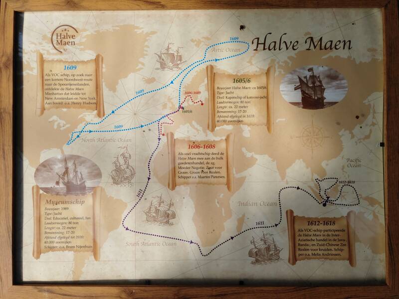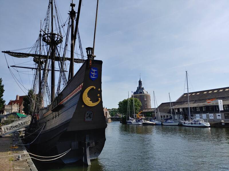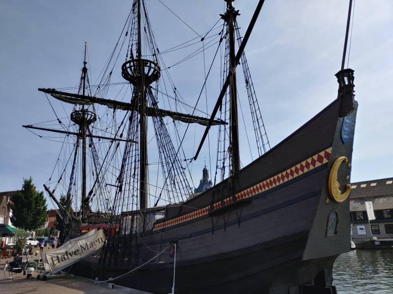 De volgende dag wilde ik het Snouck van Loosenhuis bezichtigen, maar dat kon niet, daardoor was het besluit voor het schip. Het schip arriveerde in april in de haven - (de blog van April) en men kan het schip nog steeds bezichtigen. Het schip ziet er bijzonder uit, het betreft een replica schip nadat het vorige schip werd beschoten. In 1909 werd - onder leiding van scheepsarchitect C.L. Loder en ingenieur E.J. Benthem - begonnen met de bouw van een replica van het beschoten schip. Na jaren te hebben gevaren gaat het schip in 1934 verloren door brand. In juli 1988 werd een betere replica (huidige schip) gemaakt op de Snow Dock Werf in Albany, hoofdstad van New York. De Halve Maen werd gebouwd onder leiding van de ervaren scheepsarchitect Nick Benton, na onderzoek in zeventiende-eeuwse bronnen en studie van de replica van 1909. Miljoenen Amerikanen en Europeanen hebben de Halve Maen zien varen of zijn aan boord geweest.