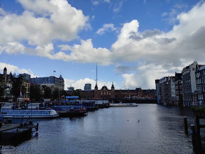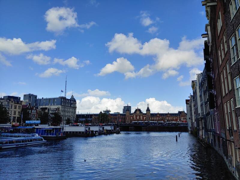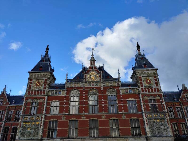 Bij station Amsterdam Centraal wilde ik de locaties zien die ik wilde bezichtigen waardoor ik besloot om een fiets te halen. Amsterdam was ongekend druk, Alkmaar was rustiger! Overal waren mensen. Het station zag er prachtig uit - dat leek op de Big Ben in Londen, een klokkentoren van de Palace of Westminster. De heer Johan Thorbecke (1798 - 1872) - destijds een staatsman - vroeg de Amsterdamse gemeenteraad om een Centraal Station. De locaties waren: bij de rivier het IJ (huidig) en een in de buurt van het Leidseplein. Thorbecke wilde het station bij het IJ, de Amsterdamse gemeenteraad niet, maar het werd bij het IJ. Het station werd gebouwd tussen 1881 en 1889 en dat was een ontwerp van Pierre Cuypers (1827 - 1921), Dolf van Gendt (1835 - 1901) en L.J. Eijmer. Het station krijgt dagelijks ruim 160.000 reizigers, een van de drukste stations van het land. Het drukste station is Utrecht Centraal met 57 miljoen reizigers (!).