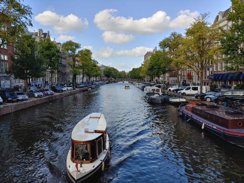 En daarna waren de locaties de grachten en de gebouwen bij de grachten. De grachten is van het lied: (''Aan de Amsterdamse Grachten, heb ik heel m'n hart voor altijd verpand''), dat lied is van Pieter Goemans (1925 - 2000), maar Wim Sonneveld (1917 - 1974) - ook beroemd van het lied (''En langs het tuinpad van m'n vader zag ik de hoge bomen staan'') - zorgde dat het lied beroemd werd. De grachten waren prachtig om te zien, de varende boten, de gekleurde bomen en gebouwen, oer-Hollands tafereel! Vervolgens wilde ik de gebouwen bij de grachten zien, een van de gebouwen deed me denken aan de serie 'Baantjer', een politieserie van de jaren '90, dat was in Amsterdam. Baantjer werd geschreven door Appie Baantjer (1923 - 2010), een politieman die schrijver was. Volgend jaar wil ik weer naar Amsterdam, er is nog veel te bezichtigen, voor meer foto's en tekst.