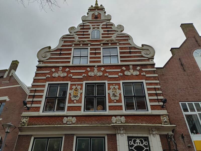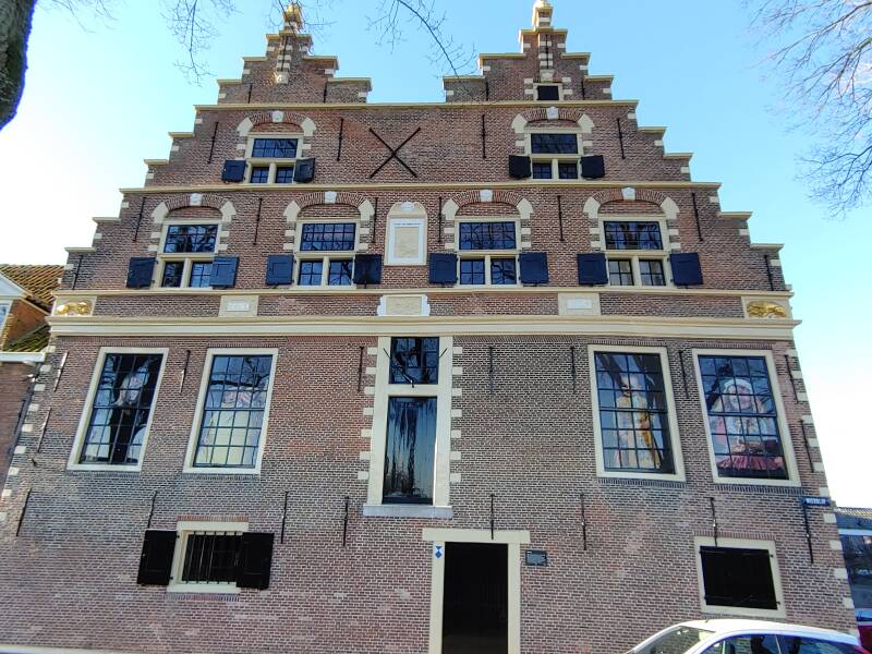 Op een huis trof ik een briljant symbool aan met een verbinding met Den Haag: de Ooievaar, die vogel tref je bij het voetbalstadion van Den Haag en als gemeentelijke logo. Ik vond dat weer mooi om te zien. Om de hoek was het Spuihuisje te vinden, het gebouw dateert uit de zeventiende eeuw, en de gevel is versierd met de wapens van Hoorn, prins Maurits van Oranje, West-Friesland, Enkhuizen en Medemblik. De dakkapel is in de 19e eeuw opgezet. Tegenwoordig staat het Spuihuisje bekend als het 'Flessenscheepjesmuseum'.