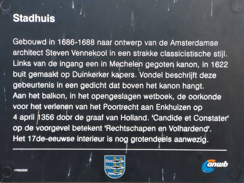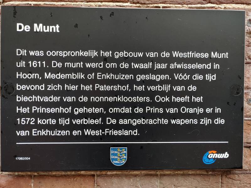 Het is een aanrader om eens een bezoekje te nemen. Vanaf 13 juli tot en met 29 augustus is het mogelijk om een rondleiding te krijgen, dat duurt ongeveer 60 minuten en gevarieerd met tijden van 14:00 uur en 15:15 uur. Op naar de volgende locatie: de Westfriese Munt. Het huidige pand is in 1611 gebouwd in de stijl van de Hollandse Renaissance, sinds 1966 staat de Westfriese Munt ingeschreven in het Rijksmonumentregister. De Prins van Oranje verbleef in het Patershof, voor de tijd toen het pand van de Westfriese Munt werd gebouwd, en dat was voor een korte tijd. De symbolen op het pand betreffen de wapens van Enkhuizen en West-Friesland. Weet u nog toen ik in Alkmaar was afgelopen oktober en de Waag aantrof? Ook dit keer heb ik de Waag gevonden, in Enkhuizen! Wat een speciaal situatie! De Waag aan de Kaasmarkt is gebouwd in 1559 en staat ook op de Rijksmonumentenlijst. De wapens zijn van Holland, Phillips II en die van onze stad. De Waag werd gebruikt als Stadstekenschool, politiebureau, VVV-kantoor en tegenwoordig als museum. Tenslotte heb ik nog 1 locatie over.