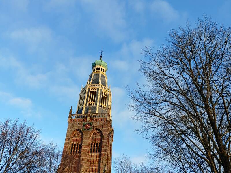 Op naar de volgende locatie: het Stadhuis, het was gebouwd van 1686 tot 1688, twee jaar in totaal. Het is gemaakt naar ontwerp van de Amsterdamse architect Steven Vennekool in een 'classicistische' stijl. Links op de muur van het Stadshuis hangt er een oorkonde met indrukwekkende tekst, die moet u eens maar lezen. Om verder geen tijd te verspillen besloot ik om naar de Sint-Pancraskerk oftewel ''De Zuiderkerk'' te gaan. De kerk is gebouwd in de 15e eeuw, het begin van 1423 tot 1458. Momenteel staat de concurrent van de Drommedaris op de monumentenlijst. De kerk is van ieder gedeelte te bekijken: vanaf de dijk richting Enkhuizen, vanaf de Dijk bij de vuurtoren de Ven naar Enkhuizen en vanaf Bovenkarspel. Wat dat betreft is het een knoert van een reus. Vanaf de reusachtige Zuiderkerk ga ik naar de Sint-Franciscus Xaveriuskerk.