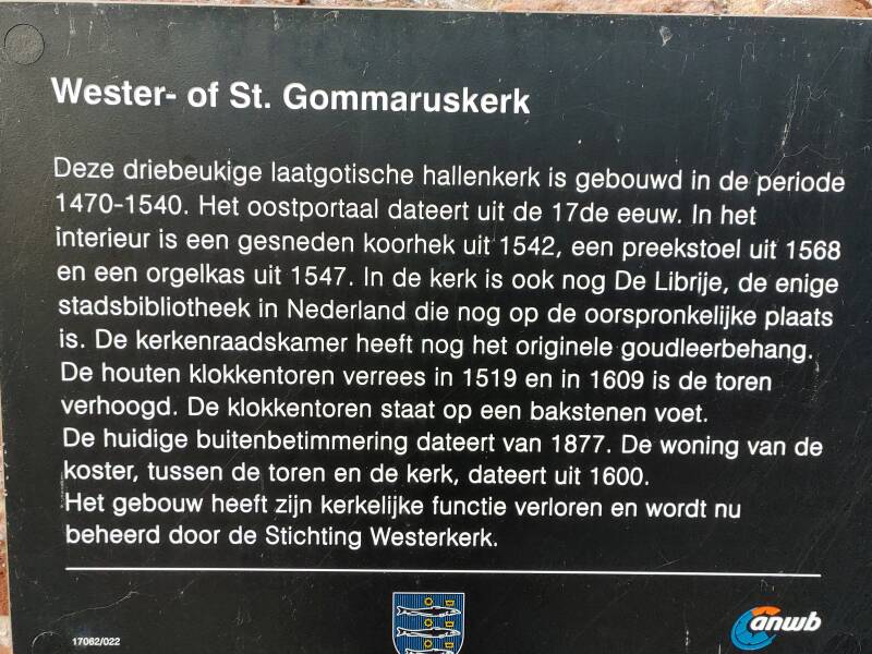 En dan hét moment waar ik voor kwam: de Sint-Gommaruskerk oftewel ''De Westerkerk'', gebouwd rond de 15de eeuw. De kerk was oorspronkelijk, voor de reformatie een kerk die gewijd was aan de heilige Gummarus van Lier en werd na de reformatie die in Enkhuizen in 1572 plaatsvond, door de Calvinisten overgenomen. De kerk staat in de 'Top 100 van de Rijksdienst voor de Monumentenzorg' uit 1990. Tegenwoordig is het gebouw in beheer bij de Stichting Westerkerk. Het kerkgebouw bestaat uit drie beuken, ieder 10 meter breed, en de kerk is 70 meter lang. De vloer, waar over u dan loopt, bestaat uit grafzerken waaronder 1600 graven liggen. De oudste steen dateert uit 1460. Het orgel is in de Westerkerk zeer oud. De kas dateert uit 1549. Het orgel is meerdere jaren in onderhoud geweest, vanaf de 17de eeuw tot nu. De dakpannen, leien genoemd, worden gerenoveerd. Bezoekers konden hun eigen 'leitje' schrijven met een speciale stift waardoor je een toepasselijke of bijzondere tekst erop kreeg. Al die geschreven leien worden uiteindelijk op de Westerkerk neergelegd.