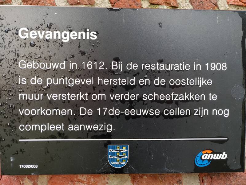 U vraagt zich misschien af: ''Stel dat er in de vroegere eeuw schavuiten waren, waar konden ze worden opgesloten?''. Heel simpel, de gevangenis in Enkhuizen werd in 1612 gebouwd. De eeuwenoude cellen, waar de schavuiten werden opgesloten om hun verschillende strafbare daden, zijn nog steeds aanwezig, maar niet meer in gebruik. Ik herinner me een aflevering waarbij de Van Rossems (zie blog in Alkmaar) Enkhuizen bezochten. Het Snouck van Loosenpark, de haven en de gevangenis werden gefilmd. In 1908 werd de puntgevel hersteld en de oostelijke muur versterkt om verder scheefzakken te voorkomen. Sindsdien zijn er geen enkele boefjes, schorriemorrie, vlegels, belhamels, misdadigers, meer te vinden in die cellen. Een opluchting voor Enkhuizen, dat scheelt weer extra politiewerk!