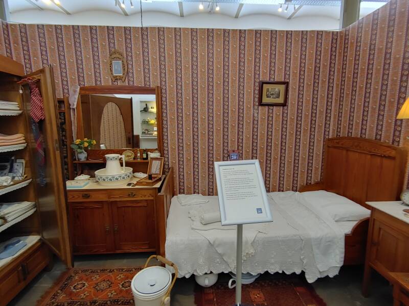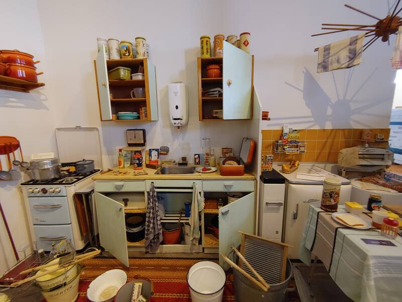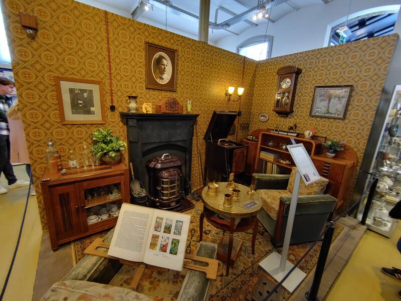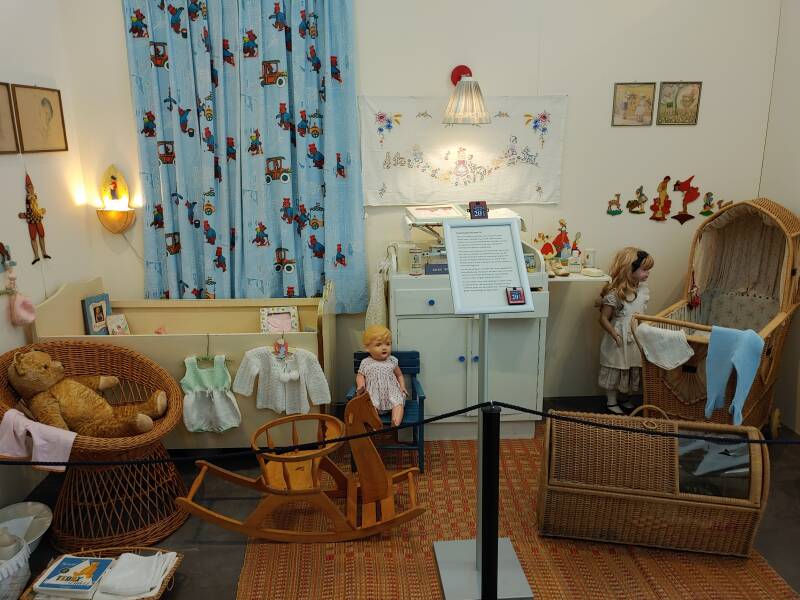 Inmiddels kwamen we aan bij de haven en liepen we een gebouw in, dat gebouw was destijds de gevangenis van Hoorn. Dat blijft zichtbaar aan de vele tralies en de hele constructie. De kers op de taart: Het museum van de twintigste eeuw! Via een looproute troffen we enkele jaargetallen van Nederland van toen. De woonkamer, de badkamer, de slaapkamer, een venster met spullen uit de Tweede Wereldoorlog, de keuken, alles stamde vanaf de jaren '50 tot ver in de jaren '90. Het deed me enorm veel, de sfeer van toen. Ook de klas met het krijtbord en de houten bankjes, elk detail klopte, het deed me denken aan 'Toen was geluk heel gewoon' met Gerard Cox, Joke Bruijs, Sjoerd Pleijsier en Mouna Goeman Borgesius, dat blijft geweldig om te kijken. Er was zelfs een groot ruimte met de series van toen: Bassie en Adriaan, De Fabeltjeskrant, Ernst en Bobbie, Samson en Gert, Tita Tovenaar, Het Klokhuis en Van Kooten en De Bie. Uit mijn jeugd herkende ik ook veel; de ouderwetse game boy, de vroegere Windows computer. Ook was er een gelegenheid om naast Swiebertje en Saartje te zitten. Kortom: het was een bijzonder moment om al dat moois te zien!