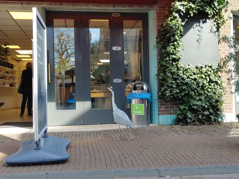 Eenmaal buiten wandelden we langs het strand richting de andere kant van Hoorn, aan de linkerkant troffen we een kerk aan met een groene dak, de koepelkerk, de koepelkerk werd gebouwd door A.C. Bleijs. De opening vond plaats in 1882. In 1993 werd de kerk gerestaureerd. In 1988 werd de kerk een rijksmonument die tevens op de monumentenlijst staat. Langs het strand zagen we bijzondere kunstvoorwerpen, niet heel spannends, maar wel de moeite waard om te bekijken. Vanaf het strand weer naar het centrum, daar troffen we iets heel opvallends: bij een viswinkel stond er een reiger te wachten, waarschijnlijk om vis te krijgen, na lang beraad ging de reiger toch maar weg om zijn weg te vervolgen, net als ons. Er waren nog vier locaties over, dus die kant op. Een gebouw met twee gele pilaren bij de deur en een man liggend op het dak. De kapel werd in 1881 herbouwd na een brand in 1877, hierbij werd de muren bewaard gebleven, maar de gotische voorganger grotendeels verwoest. Ook de Mariakapel staat op de monumentenlijst.