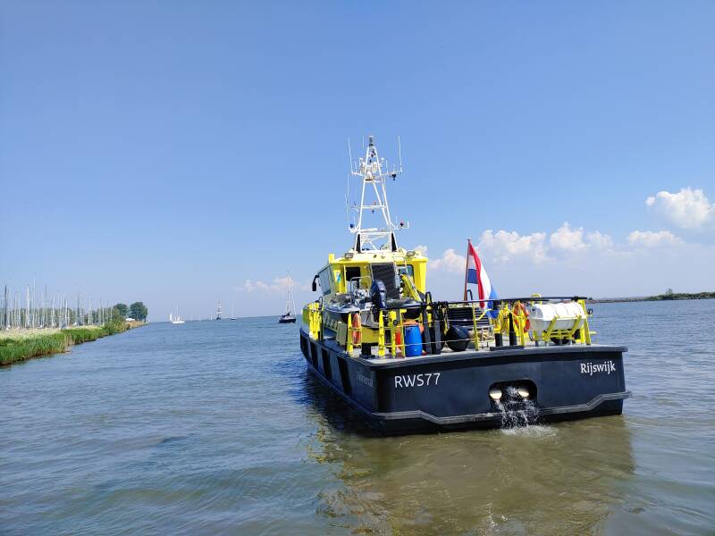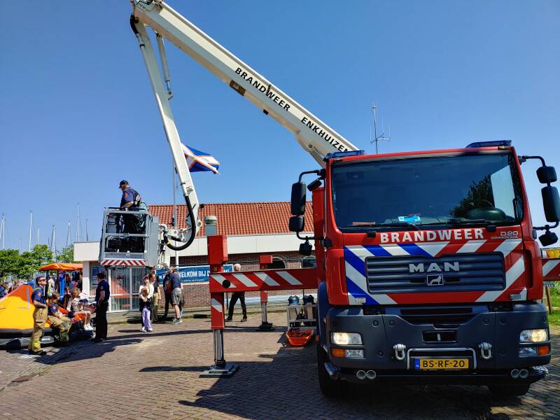 Bij de open dag kon je de uitrusting bekijken die de vrijwilligers van de KNRM dragen, en het was ook mogelijk om als donateur mee te varen. De brandweer was ook aanwezig met de hoogwerker en een reguliere brandweervoertuig voor het publiek! Bij de kade lag een boot van Rijkswaterstaat (RWS). Rijkswaterstaat is een organisatie die de infrastructuur (wegen, bruggen, sluizen en dijken) en waterstaat onderhoudt. Rijkswaterstaat heeft als hoofdtaken om te werken aan de vlotte en veilige doorstroming van het verkeer op het water en de bescherming tegen overstromingen. De oorsprong van Rijkswaterstaat ligt in de Franse periode (1795 tot 1813). In die periode waren door de slechte staat van rivierbeddingen en dijken grote hoeveelheid schade door rampzalige overstromingen. Daardoor werd er gevraagd om een nationale aanpak. In 1798 werd een nationale organisatie opgericht, het Bureau voor den Waterstaat. In 1848 werd dit hernoemd tot Rijkswaterstaat. In de loop der jaren volgde meer taken: het openen van de eerste spoorlijn in 1839, het ontwerpen en bouwen van gebouwen, de aanleg van het Twentekanaal in 1930, het Amsterdam-Rijnkanaal tussen 1933 en 1954, de Afsluitdijk in 1933, de Deltawerken tussen 1960 en 1986, de Van Brienenoordbrug in 1961 en de Oosterscheldekering in 1986. Dankzij de toppers van de KNRM en Rijkswaterstaat worden mensen gereed bij het strand en op het water!