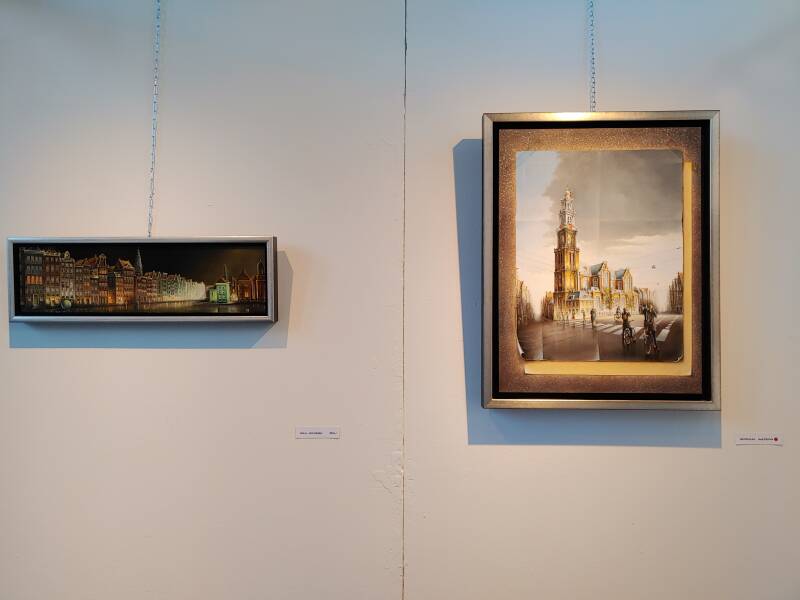 In zijn schilderijen zijn verschillende locaties: De Westerkerk, Drommedaris, het bruggetje, Zuiderspui en het Flessenscheepjesmuseum, het toenmalig weeshuis in de Westerstraat, de 'skyline' van Enkhuizen, het gebouw De Munt van Amsterdam, een paleis, het paleis van Volksjolijt (een glazen tentoonstellingsgebouw bij het Frederiksplein in Amsterdam. Het werd gerealiseerd door de Vereeniging voor Volksvlijt tussen 1859 en 1864), stadsschouwburg van Amsterdam, de eeuwenoude huizen bij het water van de sluis, de vuurtoren de Ven, Spijtbroekburgwal, de Torenstraat en de Zuiderkerk, de Zuiderkerksteeg, de Oude Gouwsboom, de Koepoort, het Naviduct (de houtribdijk), Putten, het strand en beroemde PTT-telefooncel, Basel (Zwitserland), Castle Howard (Yorkshire, Engeland), het Paard van Marken, de Brandaris bij Terschelling, de Koppelpoort bij Amersfoort, Vischpoort bij Nijkerk, Oude gracht in Utrecht, Bensdorp in Bussum, De Prins Hendrikkade in Amsterdam, St. Nicolaaskerk in Amsterdam, St. Bavo in Haarlem, Watertoren in Amsterdam, Breda, het Gemaal Lynden, Grote kerk in Delft, Workum, Cruquius en Saint-Eustache bij Parijs. Dat is te bekijken via de website van de heer Wilfert. Het publiek kan de expositie tot september bezichtigen. De schilderijen zagen er netjes uit!